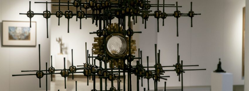 La mirada se va al impresionante ‘Gólgota’ (1964), de Lucio Muñoz, un tríptico imponente de madera tallada y policromada sobre la Crucifixión. Al famoso ‘Ostensorio eucarístico’ (1960), de José Luis Alonso Coomonte, en hierro forjado y engarces de piedra de cuarzo, que elevó a escultura una pieza tradicionalmente de orfebrería. Pero realmente uno no sabe a dónde mirar. Si hacia los bronces de Pablo Serrano, Josep Maria Subirachs, José Gonzalvo Vives o Venancio Blanco, cuatro maneras de ver y sentir a Cristo, todas dolientes. O a la tierna ‘Piedad laica’ (1960) en madera, de José Luis Sánchez.