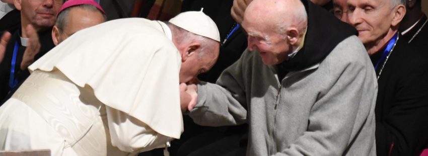 Uno de los momentos más bellos del encuentro se ha dado cuando el Papa ha saludado a Jean-Pierre Schumacher, superviviente, en 1996, de la matanza de los monjes trapenses del monasterio argelino de Tibhirine, hoy beatos. Con gran emoción, Francisco se ha postrado ante él mientras la catedral entera se llenaba de aplausos.