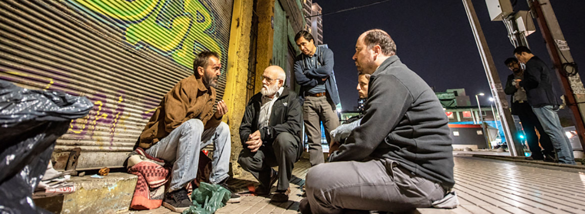 Ese mismo miércoles por la noche, Aós acompañado por el capellán del Hogar de Cristo y el rector del Santuario del Padre Hurtado, visitó ‘caletas’ donde se reúnen personas que viven en la calle, conversó con varios de ellos y visitó dos albergues.