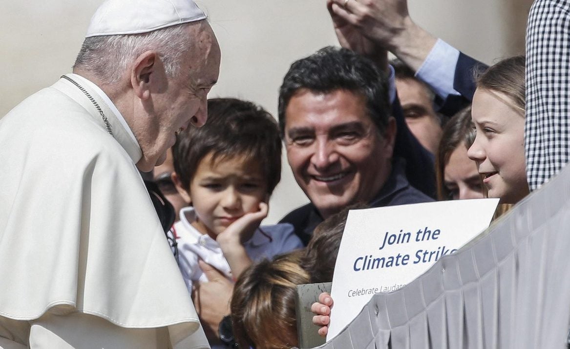 El otro momento de fuerte interés mediático durante la audiencia general de este miércoles vino con el breve saludo que tuvo lugar al final de la catequesis entre Francisco y la joven activista medioambiental sueca Greta Thunberg, que tras visitar la jornada anterior en Estrasburgo la sede del Parlamento Europeo se encuentra estos días en Roma para continuar con su campaña de concienciación mundial contra el cambio climático.