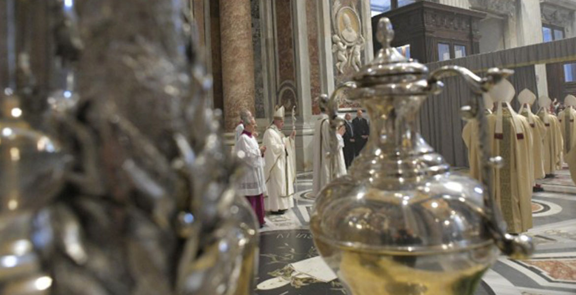 El papa Francisco ha presidido esta mañana de Jueves Santo, 18 de abril, la Misa Crismal en la Basílica de san Pedro en el Vaticano. Ante una amplia representación de los sacerdotes y religiosos de la diócesis de Roma, el Papa ha renovado con las promesas presbiterales y ha bendecido el santo crisma, el óleo de los catecúmenos y el óleo para la unción de los enfermos.