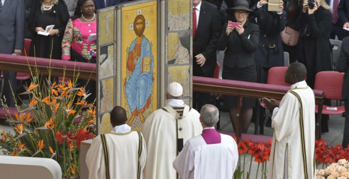En la celebración pascual en la Plaza de San Pedro, se ha desarrollado un rito particular. Se ha anunciado la Resurrección desvelando el icono Acheropita (no pintado con manos humanas, literalmente) del Salvador. La pintura ha sido traída del Santuario de la ‘Scala Santa’, cuya venerada escalera ha sido recientemente restaurada. Este rito se ha introducido y realizado de forma intermitente desde el año 2000. Como gesto de apertura al Oriente también se ha proclamado el evangelio en griego y no solo en latín.