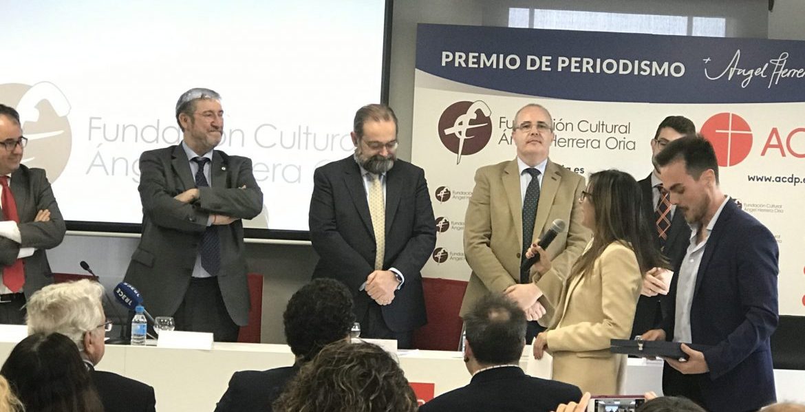 La Fundación Cultural Ángel Herrera Oria, obra de la Asociación Católica de Propagandistas (ACdP), ha entregado esta mañana el II Premio de Periodismo Ángel Herrera Oria, ex aequo, al programa ‘Misioneros por el Mundo’ de TRECE y al corresponsal en Oriente Próximo del diario El Mundo, Francisco Carrión Molina, por sus piezas informativas sobre la situación de los cristianos en Egipto, Siria y Libia.