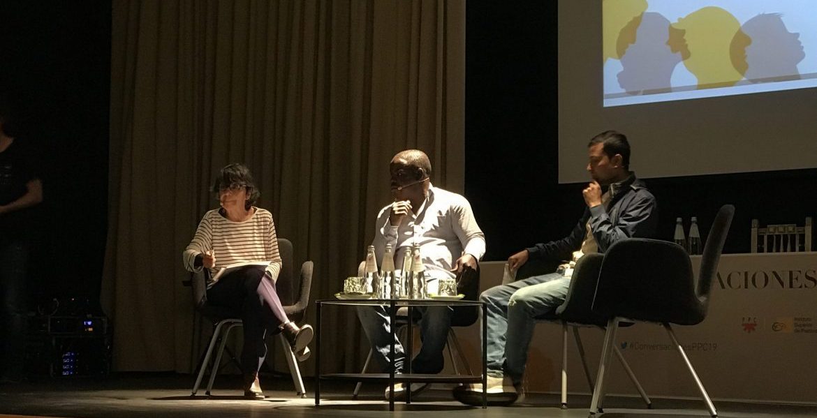 La voz de Sadio Keita, de Guinea Conakri, y de Arman Abujeyed, de Bangladesh, se dejaron escuchar como relatos en primera persona en la mesa de testimonios que acogió hoy las IV Conversaciones PPC, organizadas en colaboración con el Instituto Superior de Pastoral. La mesa estuvo moderada por la teresiana Tusta Aguilar, responsable de formación de la delegación de migraciones del arzobispado de Madrid.