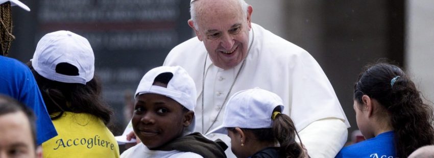 En su saludo a los fieles y peregrinos desde el papamóvil, Jorge Mario Bergoglio invitó a subir al vehículo a ocho niños provenientes de Siria, Nigeria y Congo, entre otros países, que llegaron a Italia desde Libia cruzando en barco el Canal de Sicilia o por medio de un corredor humanitario. Ahora viven junto a sus familias en el centro de acogida “Mondo Migliore”, situado en la localidad de Rocca di Papa, a las afueras de Roma, y cuentan con el apoyo de la cooperativa social “Auxilium”.