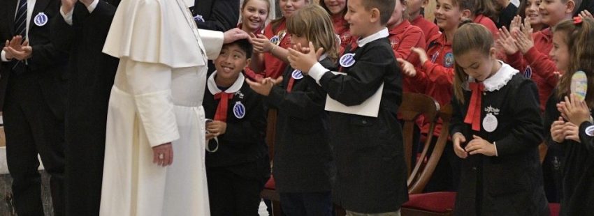 El Papa quiere que la escuela católica trabaje “más generosamente al servicio de la nueva evangelización en la que está comprometida toda la Iglesia hoy”. Así al menos lo ha manifestado al grupo de religiosos, laicos y niños lasalianos que le escuchaban esta mañana en la Sala Clementina de los Palacios Apostólicos. Hasta allí se desplazaron para conmemorar el tercer centenario de la muerte de su fundador, Juan Bautista de La Salle, al que Papa presentó como un pedagogo pionero.