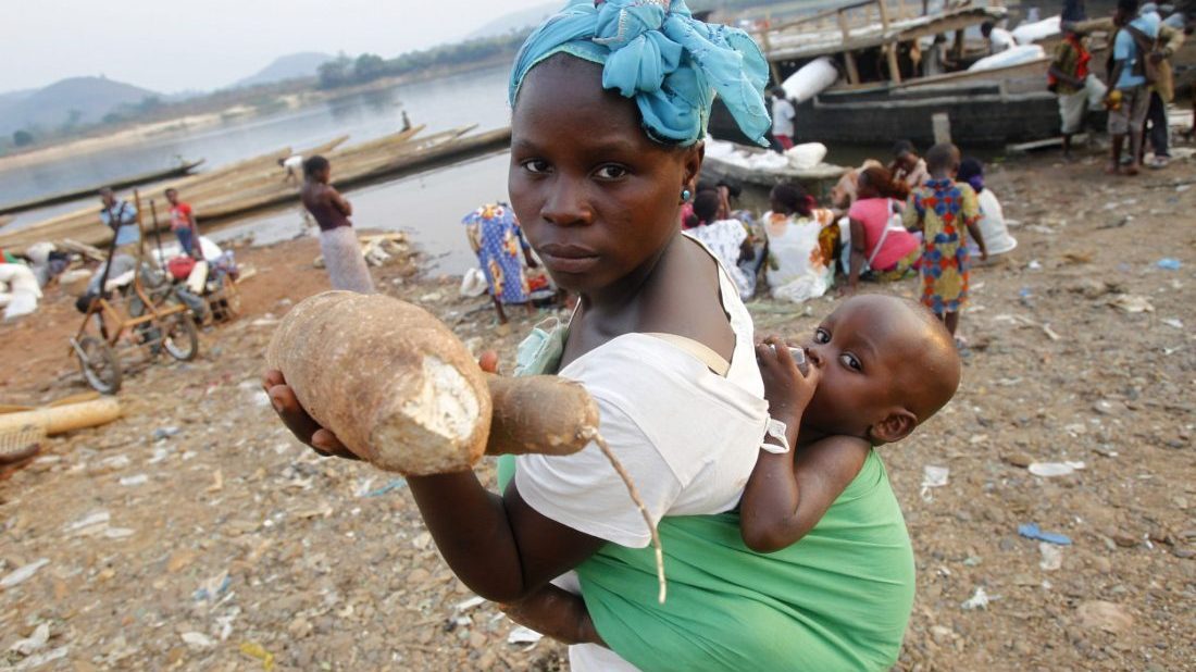A woman sells cassava on the banks of the Ubangi River near the border between the Central African Republic and the Democratic Republic of Congo in February. Central African Republic's Catholic bishops warned that their countrys wildlife and natural resources are being plundered by outside groups. (CNS photo/Legnan Koula, EPA) (MAY 14, 2014) See CAR-RESOURCES May 14, 2014.