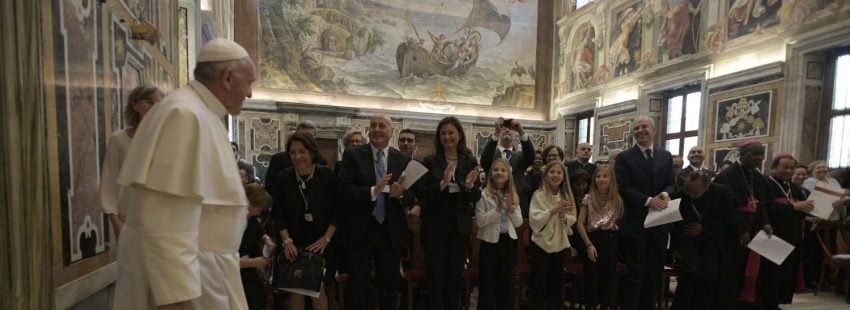 Ante las 300 personas que se han congregado en la Sala Clementina, el Papa les ha recordado que “todo niño que se anuncia en el vientre de una mujer es un regalo, que cambia la historia de una familia: de un padre y una madre, de abuelos y hermanos. Y este niño necesita ser bienvenido, amado y cuidado. ¡Siempre!”.