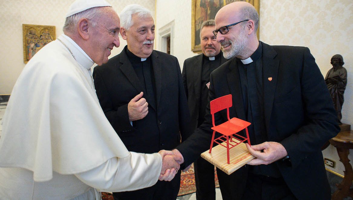 Francisco mostró, además, su preocupación por el derecho universal a una educación de calidad y la necesidad de entender la educación como bien público. “Si no se permite actuar a los actores educativos, se coarta la educación, y se convierte en un instrumento de dominación”, recalcó antes de recibir como regalo de la organización una Silla Roja, un símbolo que Fe y Alegría utiliza para representar la defensa del derecho a la educación de los más de 260 millones de niños y niñas que están sin escolarizar en el mundo.