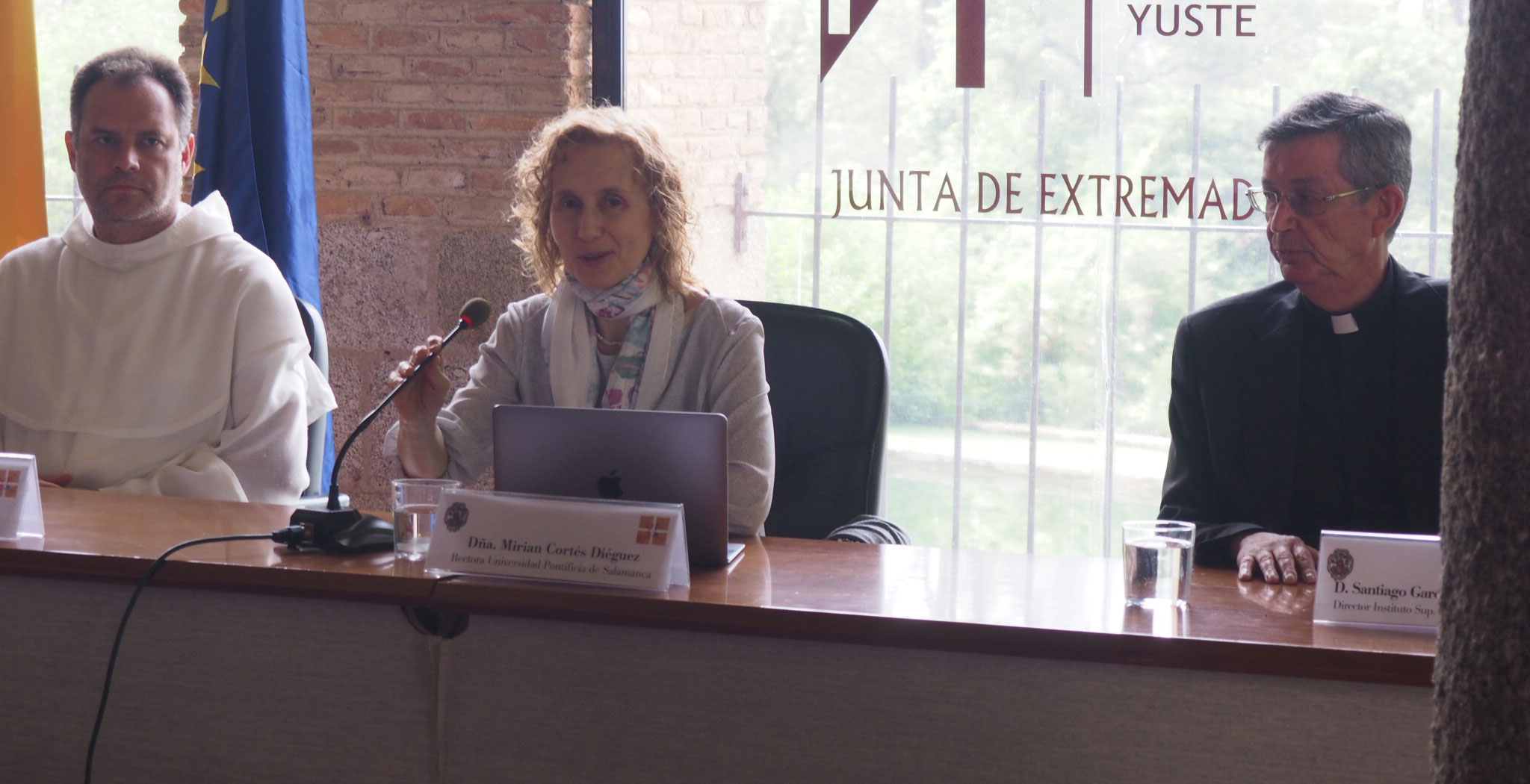 “El diálogo es fundamental en el pensamiento universitario y en la Iglesia”. Así lo manifestó esta mañana, en un lugar tan significativo como el Real Monasterio de San Jerónimo de Yuste, Mirian Cortés Diéguez, rectora de la Universidad Pontificia de Salamanca (UPSA), al inaugurar la sexta edición de los ‘Diálogos de Yuste’, cuyo objetivo, señaló, es “animar el espíritu de escucha y el pensamiento interdisciplinar para que de esta mezcla dé sus frutos”.