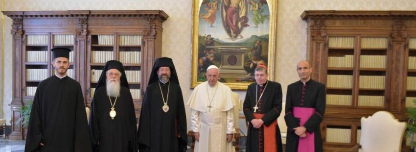 Para concluir, el Papa les ha recordado que “Dios, todopoderoso y misericordioso, a través de la intercesión de los santos apóstoles Pedro, Pablo y Andrés, hermano de Pedro, bendice y apoya nuestro compromiso en el camino hacia la plena comunión”.