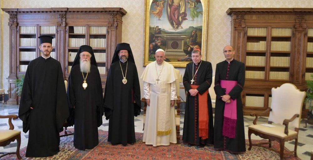 Para concluir, el Papa les ha recordado que “Dios, todopoderoso y misericordioso, a través de la intercesión de los santos apóstoles Pedro, Pablo y Andrés, hermano de Pedro, bendice y apoya nuestro compromiso en el camino hacia la plena comunión”.