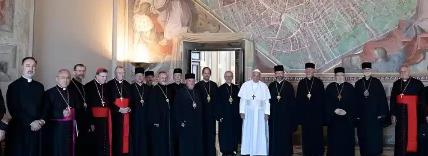 El Papa se ha dirigido así a los presentes, recordando que Ucrania “ha vivido durante mucho tiempo una situación difícil y delicada”, debido a un conflicto donde “el más débil y el más pequeño pagan el precio más alto” pero, sobre todo, “un conflicto agravado por falsificaciones de propaganda y diversos tipos de manipulación, incluido el intento de involucrar el aspecto religioso”.