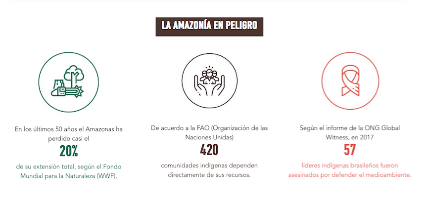 Las cifras hablan por sí mismas, frente al peligro en el que se encuentra la Amazonía, y el sitio“déjate abrazar” se hace eco de ellas: