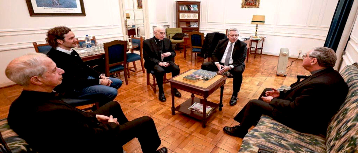 Lo recibió el presidente de la CEA, Oscar Ojea, obispo de San Isidro, el vicepresidente I, cardenal Mario Poli, arzobispo de Buenos Aires y Primado de la Argentina, y el secretario general, Carlos Malfa, obispo de Chascomús.
