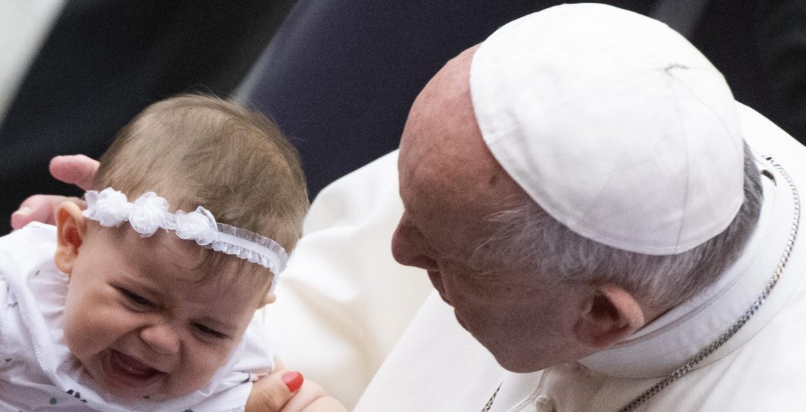 Vatican City (Vatican City State (holy See)), 21/08/2019.- Pope Francis (R) with a child as he leads his Wednesday General Audience in Nervi Hall at the Vatican, 21 August 2019. (Papa) EFE/EPA/CLAUDIO PERI