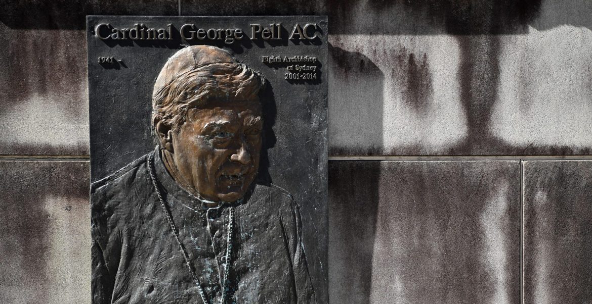 Sydney (Australia), 21/08/2019.- A plaque featuring Cardinal George Pell is visible at St Mary's Cathedral in Sydney, Australia, 21 August 2019. Cardinal George Pell's appeal has been dismissed by the Court of Appeal and he will remain in prison for sexually abusing two boys in the 1990s. EFE/EPA/JOEL CARRETT AUSTRALIA AND NEW ZEALAND OUT