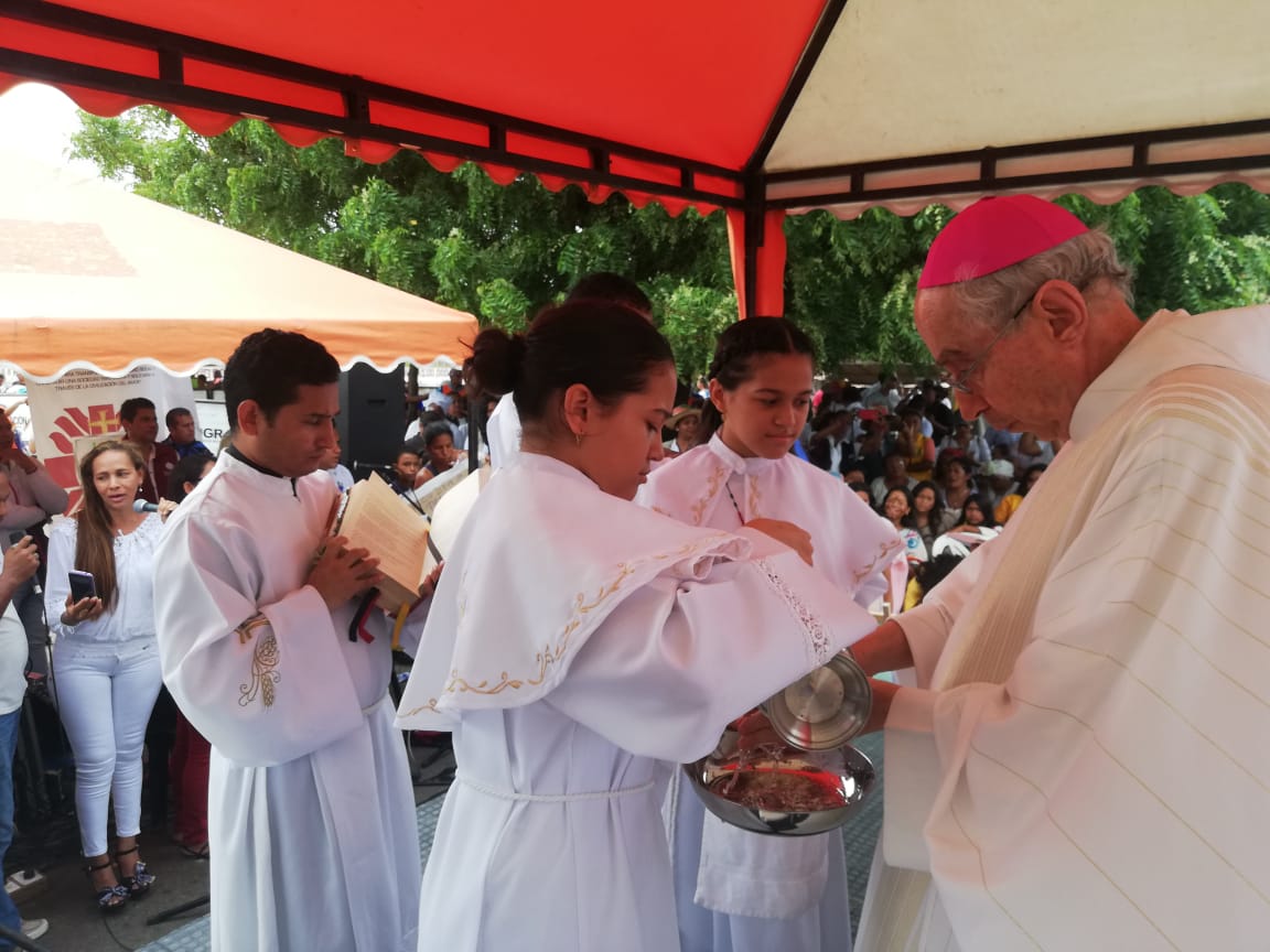 La eucaristía fue celebrada por Héctor Salah Zuleta, obispo de Riohacha, y durante la homilía ha destacado que para alcanzar la paz – y sea una realidad – es necesario que cada uno asuma el compromiso de ponerla en práctica desde la escuela, lugares de trabajo, familia, para ello destacó como principal elemento “la actitud de compasión por nuestros hermanos necesitados”.
