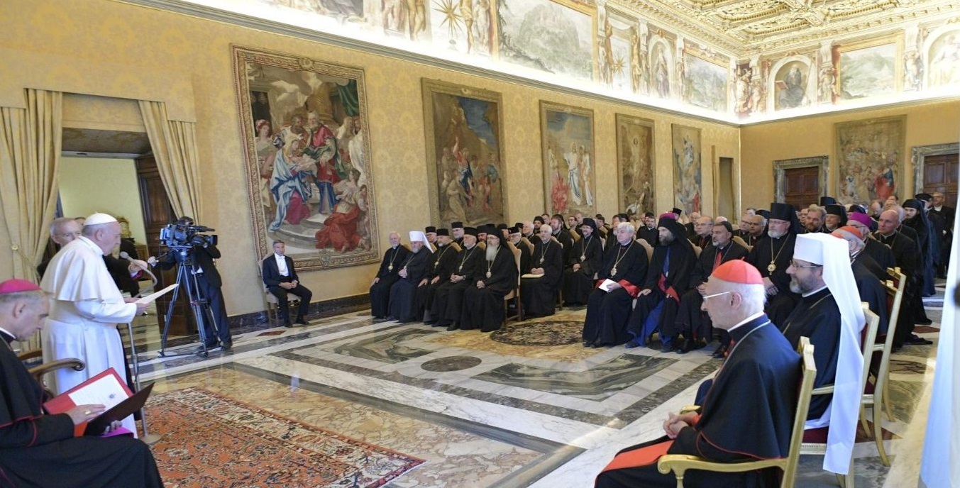 Francisco comenzó su alocución recordando su reciente viaje apostólico a Rumanía, donde presidió la beatificación de siete obispos mártires de la Iglesia greco-católica rumana. “Fue una oportunidad para mostrar cuán agradecida está toda la Iglesia católica y el Sucesor de Pedro por el testimonio de fidelidad a la comunión con el Obispo de Roma, ofrecido muchas veces en la historia, a veces hasta el derramamiento de sangre”, le dijo.