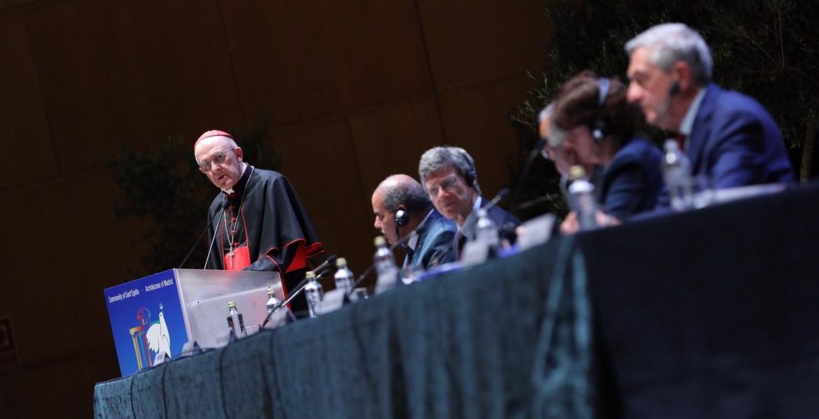 Osoro planteó que urge “ser creativos para hacer posibles pasillos humanitarios en todas las circunstancias donde la dignidad del hombre se vea amenazada”. Para ello, el cardenal considera que “no se trata de ir contra los otros, sino junto a los otros; se trata de ir con los demás, no sin los demás”. “¿Podemos corresponder a ese modelo de paz y fraternidad que anhelamos?”, preguntó el pastor de Madrid al auditorio, una cuestión que lanzó como desafío para este encuentro.
