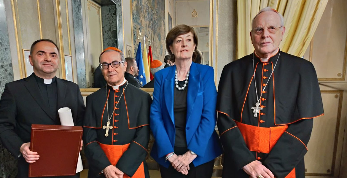 Con motivo de la Fiesta Nacional de España, el 12 de octubre, la embajadora de España ante la Santa Sede, Carmen de la Peña, entregó al rector del Colegio Español, José San José Prisco, la Placa de honor de la Real Orden de Isabel la Católica. Un reconocimiento que viene de parte del rey Felipe VI y que destaca la labor de instituciones que, por su trayectoria y de modo relevante, han contribuido al bien de España y a favorecer las relaciones de amistad y cooperación con la comunidad internacional.