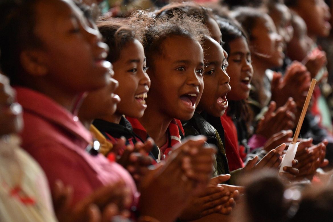 Akamasoa (Madagascar), 08/09/2019.- Children clap their hands during the visit of Pope Francis in the City of Friendship, in Akamasoa, Madagascar, 08 September 2019. Pope Francis will visit Mozambique, Madagascar, Mauritius on his three-nation trip to Africa, from 04 to 10 September 2019. (Papa, Mauricio) EFE/EPA/LUCA ZENNARO