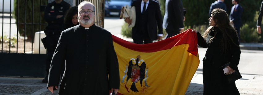 El responso, oficiado por Santiago Cantera – prior de la abadía del Valle de los Caídos -, previsto para el momento de la inhumación del dictador Francisco Franco, ha acabado por ser una eucaristía celebrada por Ramón Tejero, sacerdote hijo del militar golpista del 23F, Antonio Tejero. Un momento en el que, ya rodeados de todo tipo de símbolos referentes a la Falange, permitidos por el Ejecutivo al considerar que el panteón pertenece al ámbito familiar, ha comenzado una celebración en la que Tejero ha exaltado la vida de Franco, a quien ha definido como un “católico y español ejemplar”, un “humilde servidor de Cristo Redentor, que supo donar en gratuidad su vida”.