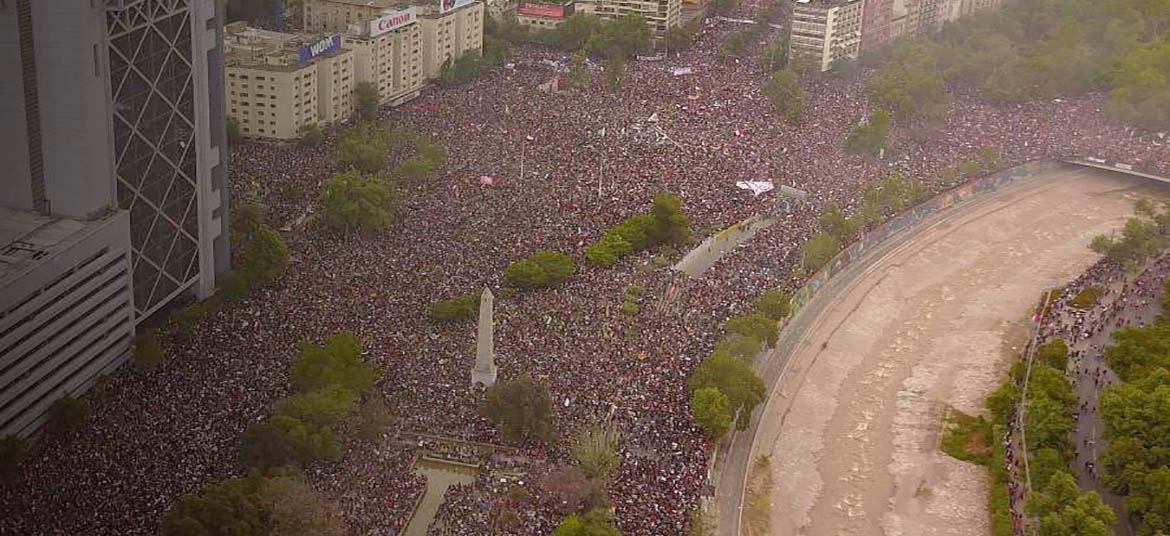 Viernes 17 horas. Una multitud mayor a días anteriores se reúne en Plaza Baquedano y sus calles adyacentes de Santiago. La escena se repite en varias ciudades. Los manifestantes siguen protestando, a pesar de la oferta de mejoras económicas ofrecidas por el presidente Piñera. Bocinas y cacerolas siguen escuchándose en las calles.
