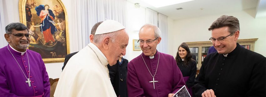 El papa Francisco ha recibido en la tarde de ayer, 13 de noviembre, en el Vaticano la visita del arzobispo de Canterbury, Justin Welby. La máxima autoridad de la Iglesia anglicana –con el permiso de la reina Isabel de Inglaterra– iba acompañada por el arzobispo Ian Ernest, director del Centro Anglicano de Roma, que, además hace la función de Representante de la Comunión Anglicana ante la Santa Sede. Los líderes religiosos tuvieron un encuentro al que siguió el habitual intercambio de regalos.
