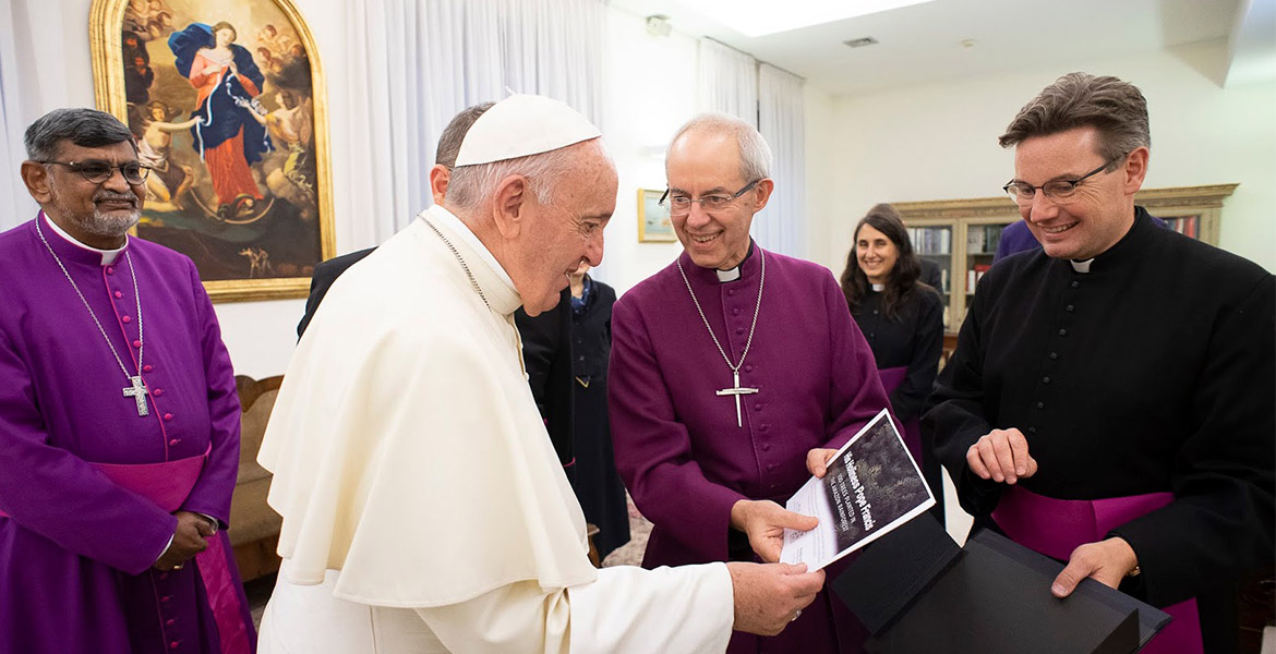 El papa Francisco ha recibido en la tarde de ayer, 13 de noviembre, en el Vaticano la visita del arzobispo de Canterbury, Justin Welby. La máxima autoridad de la Iglesia anglicana –con el permiso de la reina Isabel de Inglaterra– iba acompañada por el arzobispo Ian Ernest, director del Centro Anglicano de Roma, que, además hace la función de Representante de la Comunión Anglicana ante la Santa Sede. Los líderes religiosos tuvieron un encuentro al que siguió el habitual intercambio de regalos.