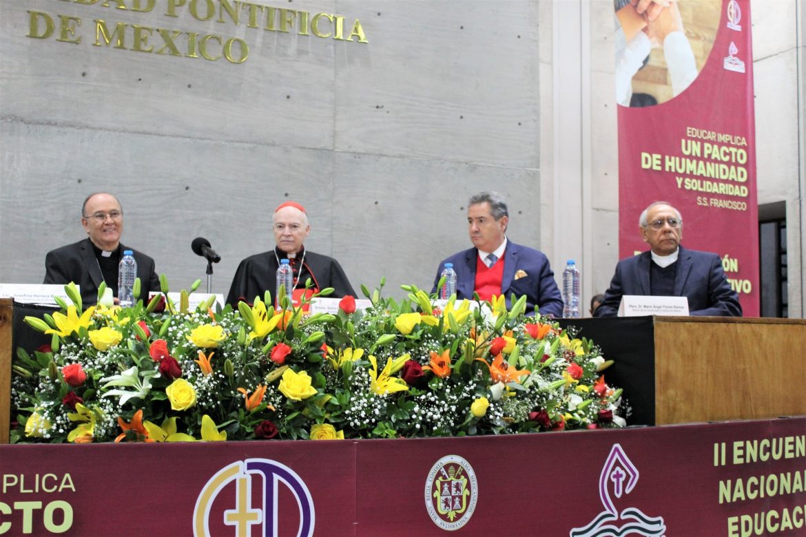 Durante la inauguración del encuentro participaron el cardenal Carlos Aguiar Retes, Gran Canciller de la Universidad Pontificia de México y Esteban Moctezuma Barragán, Secretario de Educación Pública, a través de un video de 8 minutos; además se dio lectura a un mensaje del cardenal Giuseppe Versaldi, Prefecto de la Congregación para la Educación Católica de la Santa Sede.