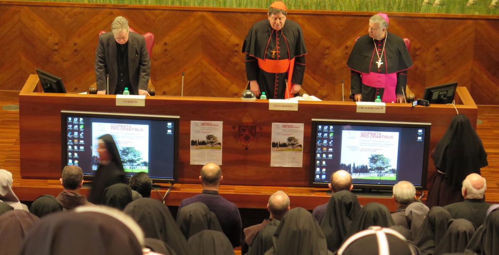 El cardenal brasileño Joao Braz de Aviz, prefecto del citado dicasterio de la Santa Sede, leyó al principio de su intervención un mensaje del Pontífice con fecha del 17 de noviembre dedicado especialmente a las religiosas de vida contemplativa, a las que califica de “corazón orante en la Iglesia y para la Iglesia”. También les hace cuatro agradecimientos: por su “gran vocación y misión”, por la “presencia evangélica en el silencio de los claustros”, por la “generosa oferta de vuestra vida” y, finalmente, por “tanta santidad que se sigue respirando hoy en los monasterios”.