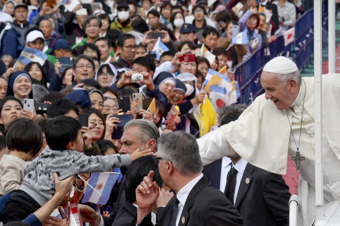 Tokyo (Japan), 24/11/2019.- Pope Francis greets well-wishers at Nagasaki Baseball Stadium in Nagasaki, Japan, 24 November 2019. The pope is on a four-day visit to Japan, which will be the first in 38 years and only the second in history. (Papa, Japón) EFE/EPA/CIRO FUSCO