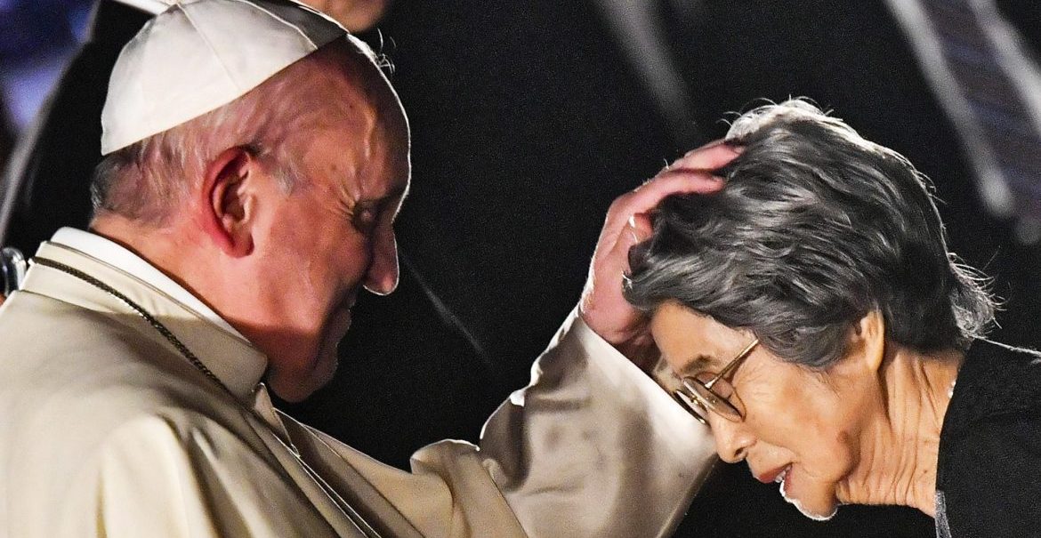 Era de noche a las seis de la tarde cuando el Papa llegó a Hiroshima. Hacía frío y algunos pocos miles de personas le esperaban en el inmenso Parque del Memorial de la Paz. Reinaba un silencio absoluto solo interrumpido por extractos de música clásica .