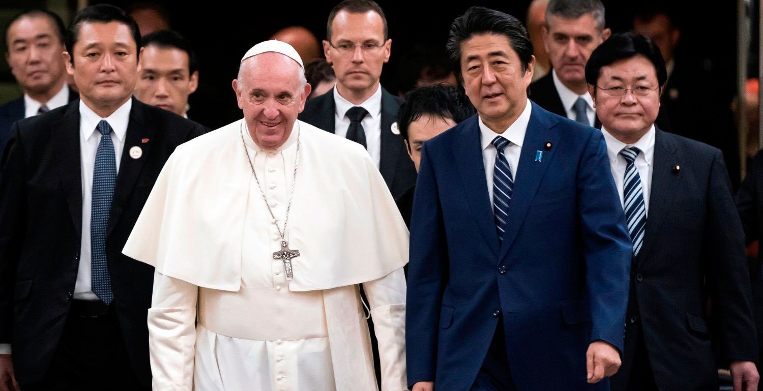 Abe (65 años) que ya estuvo en el Vaticano el 6 de junio de 2014, se entrevistó privadamente esta tarde con Jorge Mario Bergoglio en una de las salas del edificio presidencial. Luego ha pronunciado un discurso emotivo y muy respetuoso con Francisco en el curso del que resaltó algunas de las ideas directrices de su Gobierno; siendo Japón el único país del mundo que ha sufrido la hecatombe de dos bombardeos atómicos su prioridad sigue siendo “un mundo libre de las armas nucleares”, para lo que su política se dirige a fomentar el diálogo y la colaboración entre las naciones que poseen arsenales nucleares y quienes no lo tienen.