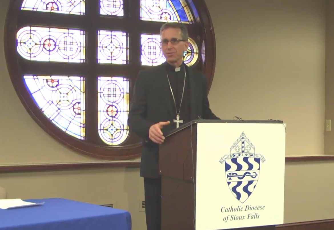 La Diócesis de Sioux Falls se compone de 35,091 millas cuadradas y tiene una población total de 570,605, de los cuales 110,386 son católicos.