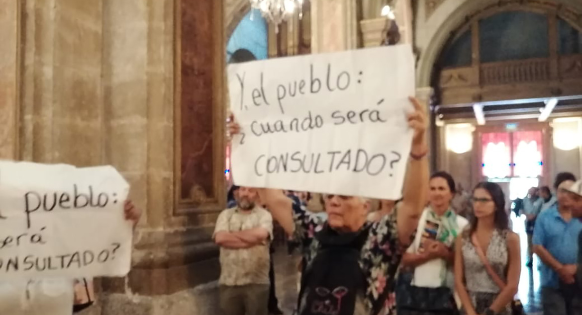 Al mismo tiempo de la acción de esos jóvenes, integrantes del Movimiento Mujeres Iglesia levantaron pancartas en una de las cuales se leía ‘¿Y el pueblo cuándo será escuchado?’, reclamando por la designación de obispos sin consulta al Pueblo de Dios y por la presencia del cardenal Ricardo Ezzati, en la ceremonia, quien enfrenta acusación judicial de encubrir abusadores dentro de la Iglesia en su etapa de arzobispo.