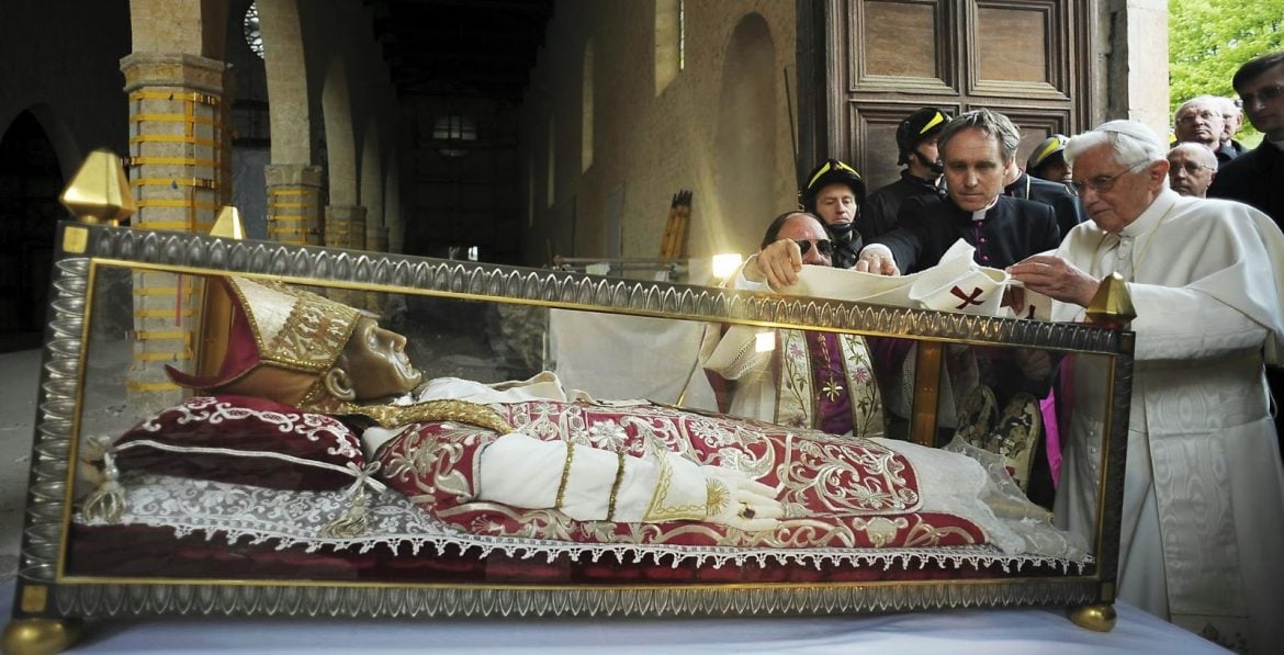Al final, acabó siendo elevado a los altares en 1313. Con motivo del terremoto en L’Aquila en 2009, el propio Benedicto XVI, de visita en la ciudad, le rindió un cariñoso homenaje. Sin saberlo, se postraba ante los restos de uno de los que serían sus compañeros en el peculiar club de los papas eméritos.