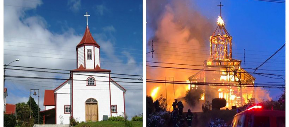 A las 6,15 de la madrugada se activaron las alarmas de incendio. Las llamas ya devoraban el templo de San Francisco, tradicional parroquia de Ancud, cuya construcción comenzó hacia 1906, y es uno de los más de cien templos de la Escuela Chilota de Arquitectura Religiosa en Madera. En 2016 se presentó el expediente que lo postuló para ser declarado Monumento Histórico por el Consejo de Monumentos Nacionales, lo que aún no había ocurrido.