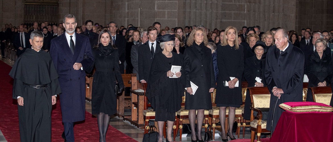 -FOTODELDIA- GRAF646 SAN LORENZO DE EL ESCORIAL (C. DE MADRID), 29/01/2020.- Los reyes Felipe y Letizia, junto a los reyes Juan Carlos y SofÌa y las infantas Elena y Cristina, a su llegada al funeral de la infanta Pilar de BorbÛn oficiado este miÈrcoles en la basÌlica del Real Monasterio de San Lorenzo de El Escorial.EFE/Emilio Naranjo POOL