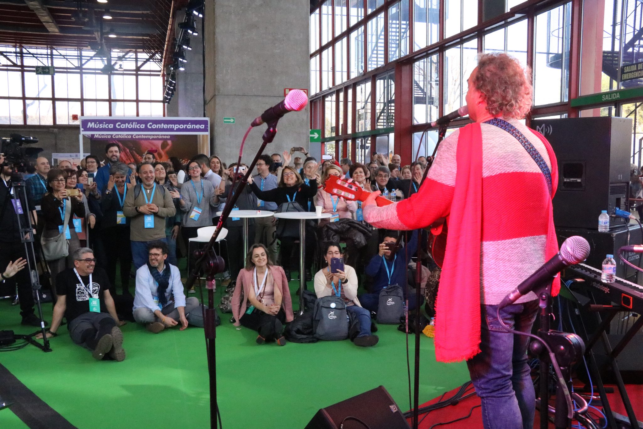 Los músicos católicos, a una. Prestando su talento individual para formar un coro cargado de matices donde nadie desentona. Lo mismo en las celebraciones, que en el concierto del sábado por la noche. O en los momentos de respiro en la zona de acogida.