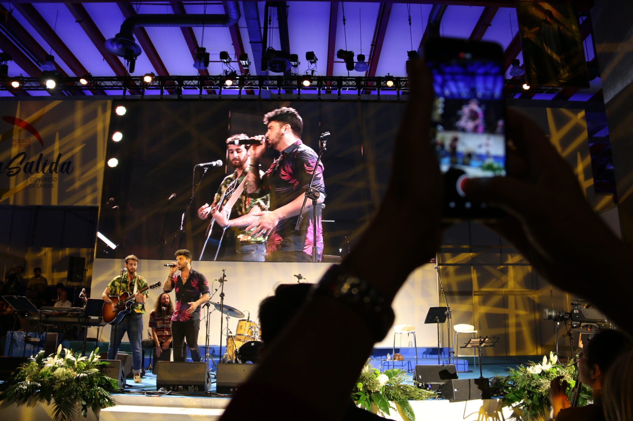 Los músicos católicos, a una. Prestando su talento individual para formar un coro cargado de matices donde nadie desentona. Lo mismo en las celebraciones, que en el concierto del sábado por la noche. O en los momentos de respiro en la zona de acogida.