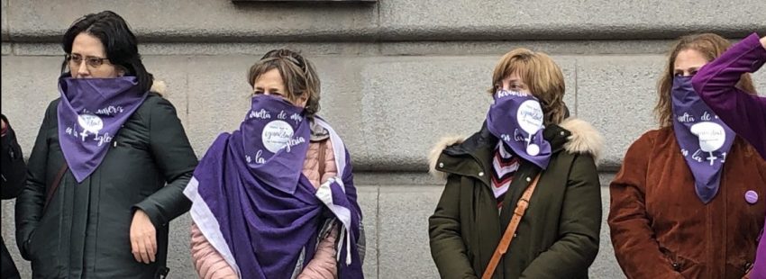 La lectura de este documento fue el clímax del evento junto al gesto de ponerse y quitarse las pañoletas violetas que portaban algunos de los manifestantes como signo del silencio que son sometidas las mujeres cristianas. “Nos han robado la palabra, nos han robado nuestras raíces”, señaló Marifé Ramos, de Mujer y Teologías.