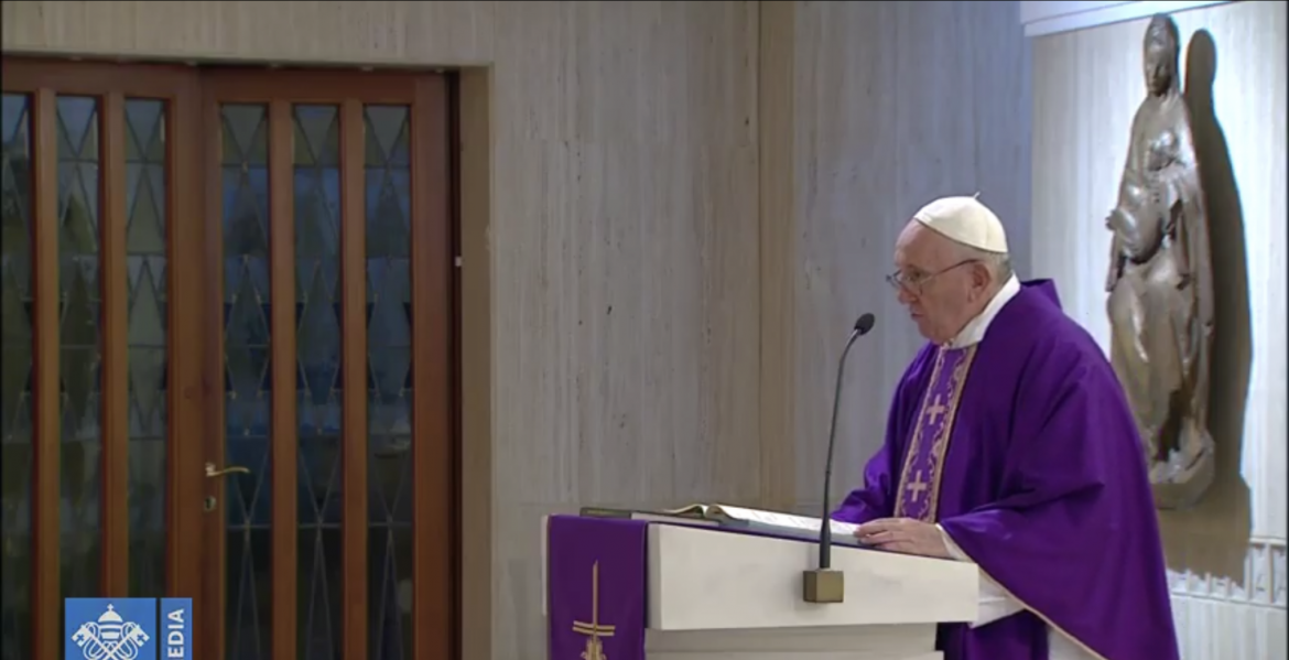 Francisco ha comenzado su primera misa desde la Capilla de Santa Marta retransmitida en directo con una breve monición para encomendar a Dios el trabajo de quienes luchan contra el coronavirus. “En este día, ofrecemos la misa por la enfermedad, por esta epidemia del coronavirus. Por los médicos, por los enfermeros y por los voluntarios que ayudan tanto, por los familiares, por los ancianos que están en las residencias, por los encarcelados. Recemos juntos esta semana una oración fuerte al Señor”, expresó el Papa ante una crisis mundial que ha afectado incluso al día a día de la Iglesia y de la vida del Pontífice.