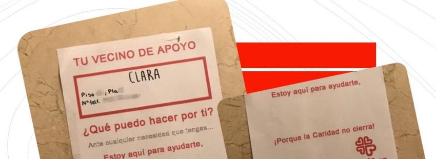 Basta con imprimir un cartel, rellenarlo con algún dato y situarlo en el portal de casa. Es la sencilla propuesta lanzada por Cáritas Diocesana de Madrid para ayudar las personas más vulnerables a que puedan sobrellevar sin dificultades la cuarentena solicitada por las autoridades para frenar la expansión del coronavirus.