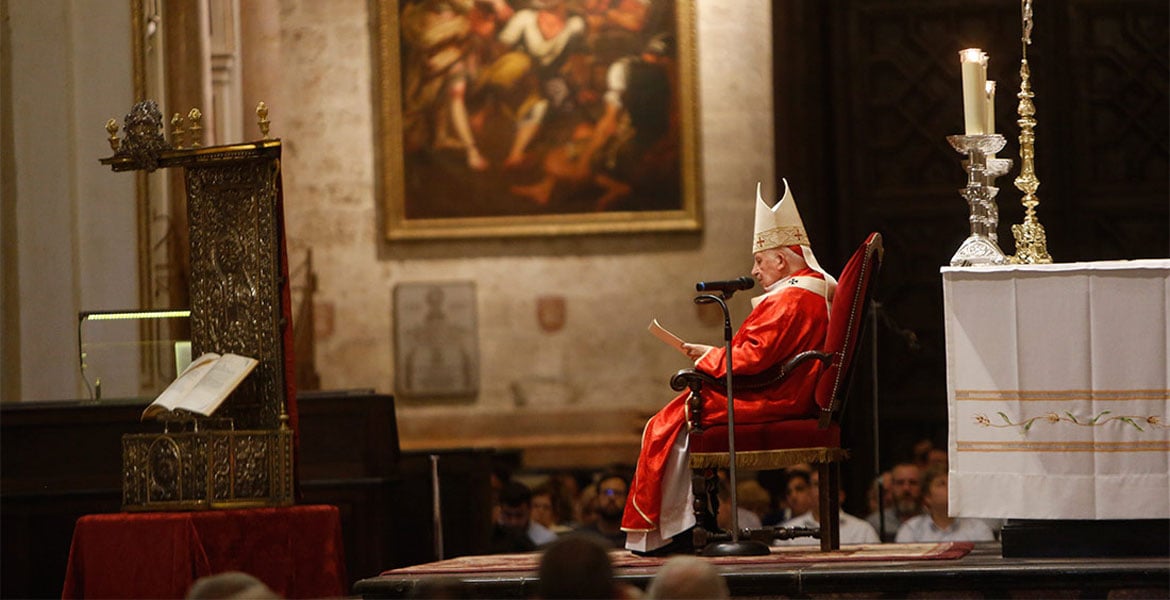La archidiócesis mantiene suspendido el culto, pero ha redoblado las misas por televisión, para que todos los fieles puedan participar en la Eucaristía. La Basílica de la Virgen de los Desamparados ha ampliado los horarios de las retransmisiones de las misas por La Ocho Televisión, en atención a la dispensa del precepto dominical anunciado por el cardenal a los fieles de la diócesis mientras dure la situación de crisis sanitaria. Así, los sábados y domingos será retransmitida a las 19:30 horas y, por las mañanas, a las 10:30 horas. De igual forma, de lunes a viernes podrán seguirse también por televisión las eucaristías que se oficien a las 10:30 horas.
