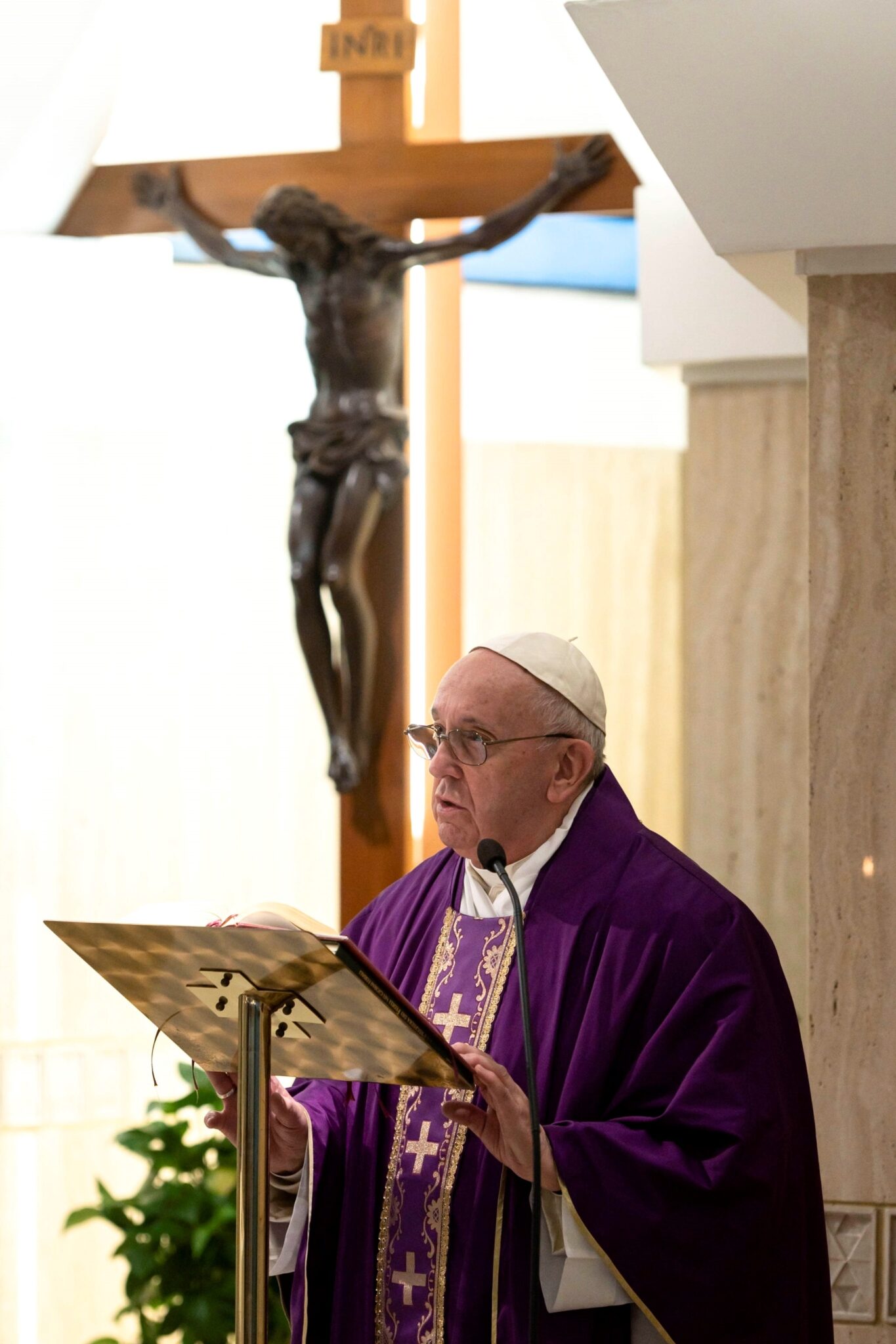 Vatican City (Vatican City State (holy See)), 10/03/2020.- A handout picture provided by the Vatican Media shows Pope Francis celebrating Mass at Saint Martha's House, in Vatican City, 10 March 2020. The Pope urged on the day Catholic priests on to go out and see those sickened by the novel coronavirus. (Papa) EFE/EPA/VATICAN MEDIA HANDOUT HANDOUT EDITORIAL USE ONLY/NO SALES