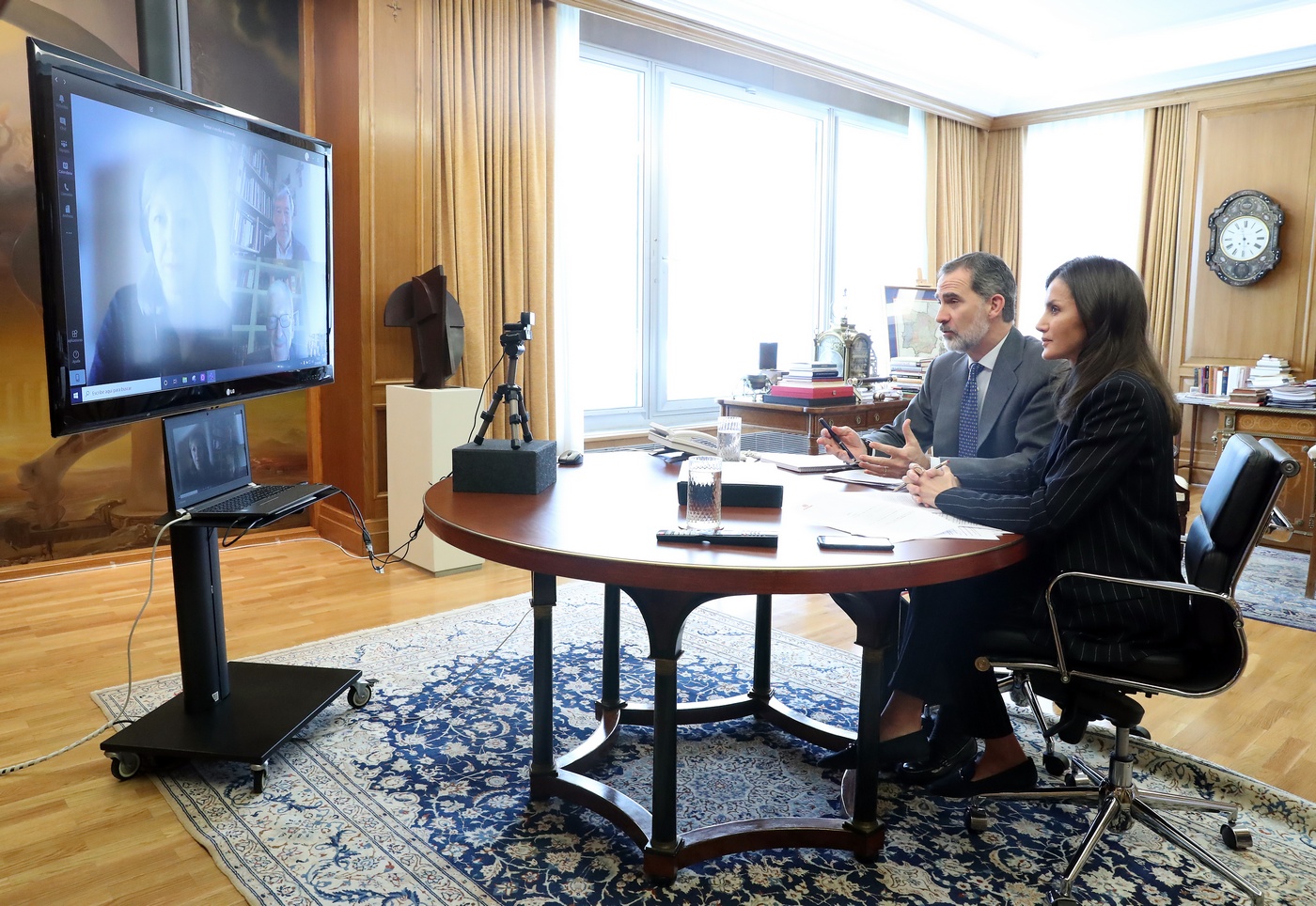 En la mañana de este viernes 27 de marzo, los Reyes, Felipe VI y Letizia, han mantenido un encuentro por videoconferencia con tres de los principales representantes de Cáritas: su presidente, Manuel Bretón; su secretaria general, Natalia Peiro; y el director de Cáritas Madrid, Luis Hernández Vozmediano.
