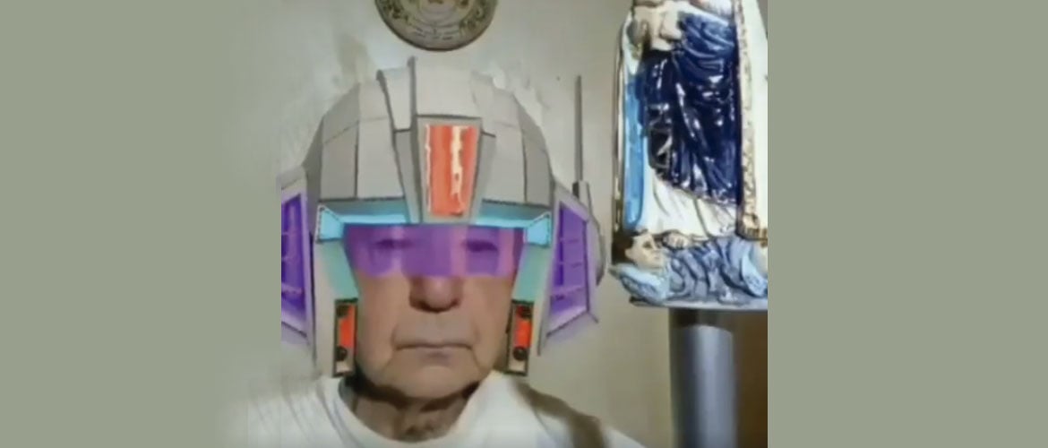Este es el caso de un cura italiano, de edad avanzada, que ha querido utilizar las redes sociales para llevar la Palabra de Dios a los hogares de sus fieles. Eso sí, parece que la tecnología, en este caso, le ha jugado una mala pasada. Cuando el presbítero se disponía a iniciar la celebración, su imagen comenzó a cambiar. De repente era un gato, luego aparecían unos ojos en grande salidos de toda órbita, para luego ser un egipcio, mago, mafioso o astronauta.