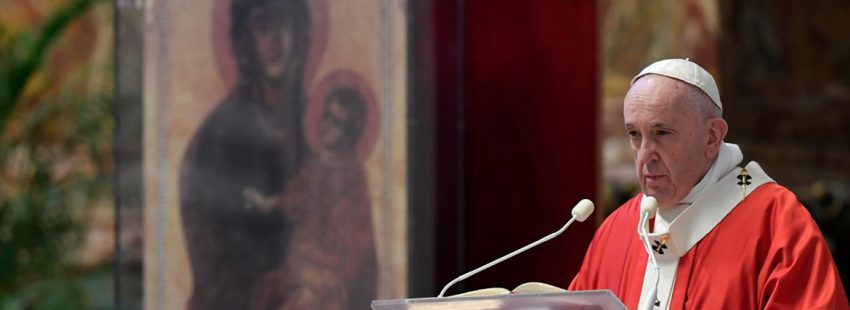 Al concluir la celebración del Domingo de Ramos y la Pasión del Señor, el papa Francisco rezó el ángelus en el interior de la basílica de San Pedro en el altar de la Cátedra. El Pontífice saludó a quienes “han participado a través de los medios de comunicación” en la celebración tan particular de este año pro la alerta sanitaria por el coronavirus.